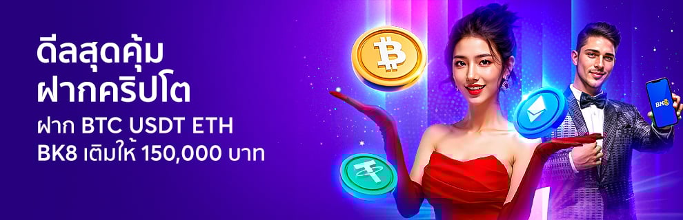 BK8 เติมให้ 150,000 บาท ฝากคริปโตสกุลเงินใดก็ได้กับ BK8 ไม่ว่าจะเป็น BTC USDT และ ETH